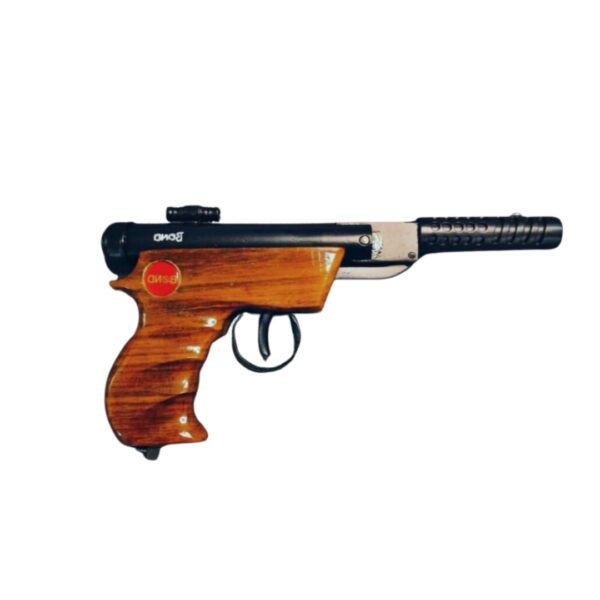 It’s an Indian-made Single-shot .177 Caliber / 4.5 mm Air pistol, that uses .177 pellets as ammo.